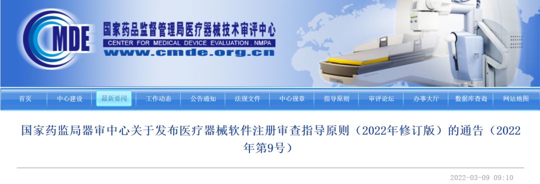 國(guó)家藥監(jiān)局器審中心關(guān)于發(fā)布醫(yī)療器械軟件注冊(cè)審查指導(dǎo)原則(2022年修訂版)的通告(2022年第9號(hào))