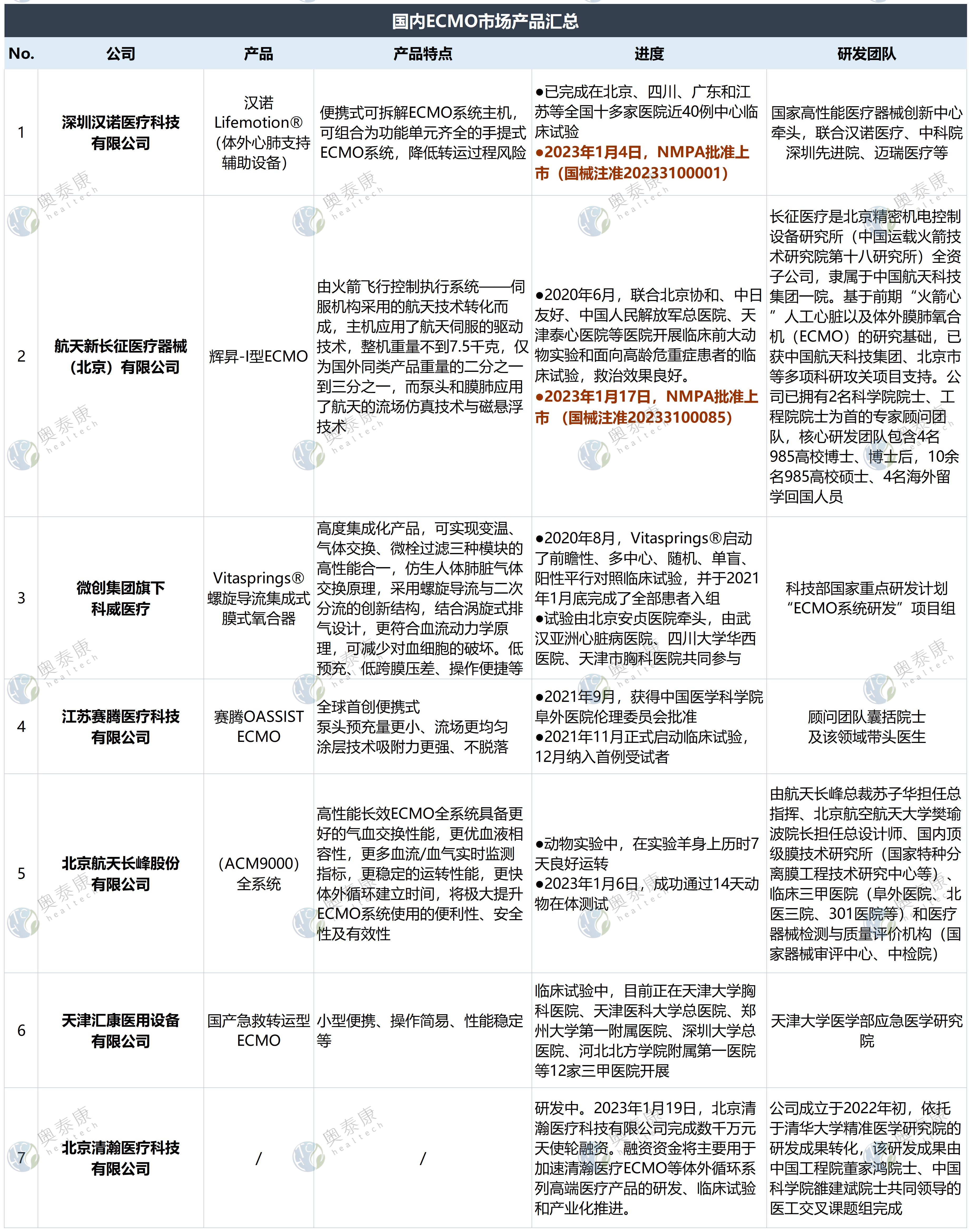 國(guó)內(nèi)ECMO產(chǎn)品研發(fā)進(jìn)度