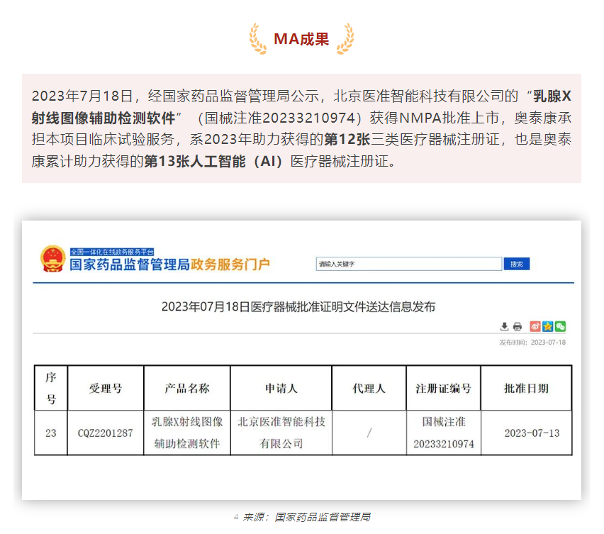 奧泰康MA成果 | 乳腺X射線圖像輔助檢測(cè)軟件獲證