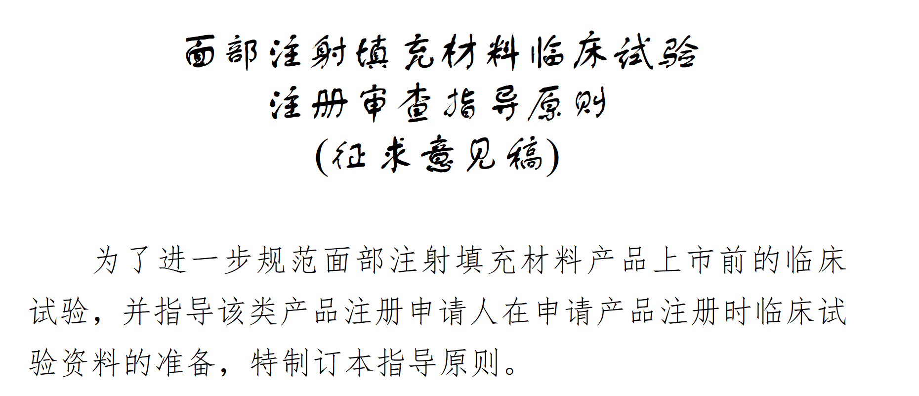 為進一步規(guī)范面部注射填充材料產品上市前的臨床試驗,國家藥監(jiān)局器審中心發(fā)布《面部注射填充材料臨床試驗注冊審查指導原則(征求意見稿)》,針對不用材料面部注射產品臨床試驗中的適用范圍、試驗設計、臨床評價指標、樣本量、入排標準等進行了規(guī)范。