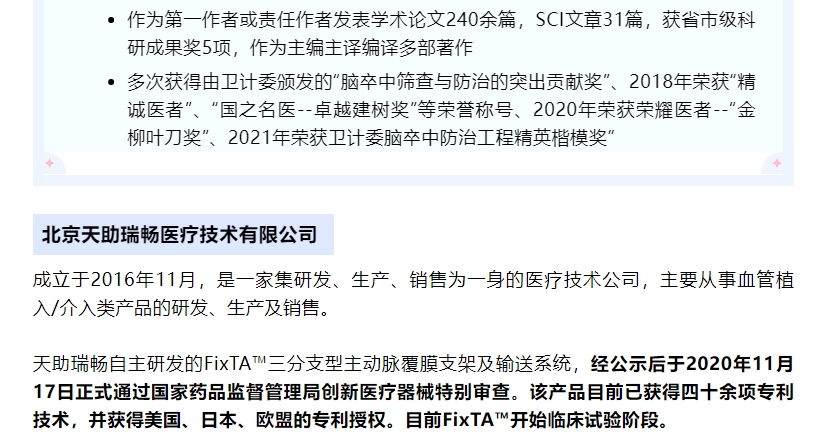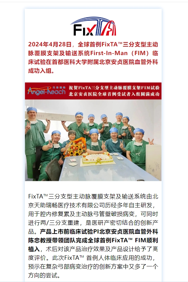 MA里程碑 全球首例北京天助瑞暢FixTA?三分支型主動(dòng)脈覆膜支架及輸送系統(tǒng)FIM臨床試驗(yàn)成功入組