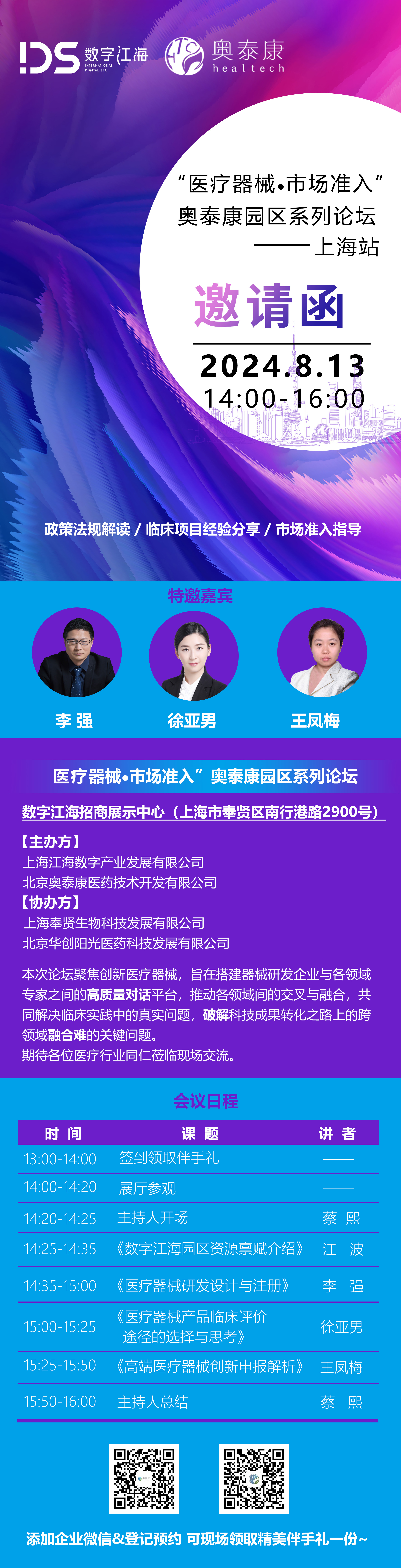 論壇邀約8.13(下周二)?? “醫(yī)療器械·市場(chǎng)準(zhǔn)入”系列論壇 多位演講嘉賓帶來(lái)精彩分享 ??奧泰康與您相約上海~