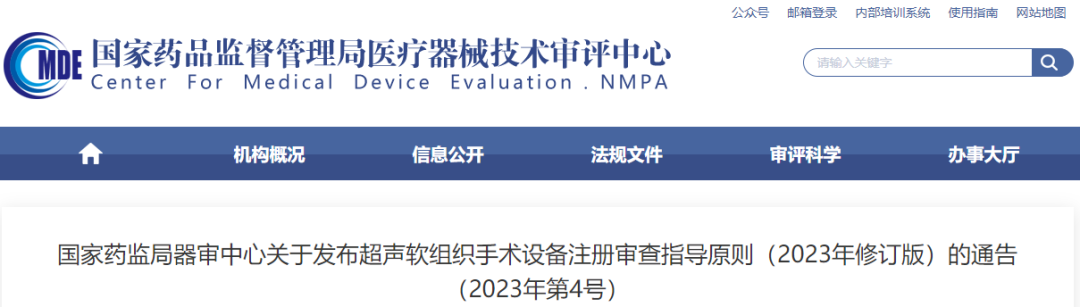 ●2023年3月31日,國家藥監(jiān)局器審中心修訂發(fā)布了《超聲軟組織手術(shù)設(shè)備注冊(cè)審查指導(dǎo)原則》(2023年修訂版)。(附件:超聲軟組織手術(shù)設(shè)備注冊(cè)審查指導(dǎo)原則(2023年修訂版