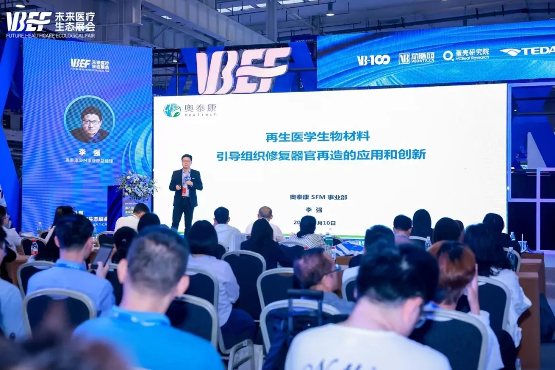 2024年5月7日,由VB100、動脈網(wǎng)、蛋殼研究院、動脈橙主辦的2024VBEF第八屆未來醫(yī)療生態(tài)展會落下帷幕。奧泰康受邀出席本次會議,奧泰康蘇州CDMO中心SFM事業(yè)部負責人李強參加生物再生材料論壇,并發(fā)表了題為《再生醫(yī)學生物材料引導組織修復器官再造的應用和創(chuàng)新》的主題報告,在圓桌討論環(huán)節(jié),針對“生物材料的創(chuàng)新轉(zhuǎn)化與臨床落地”主題與參會嘉賓展開了學術探討。