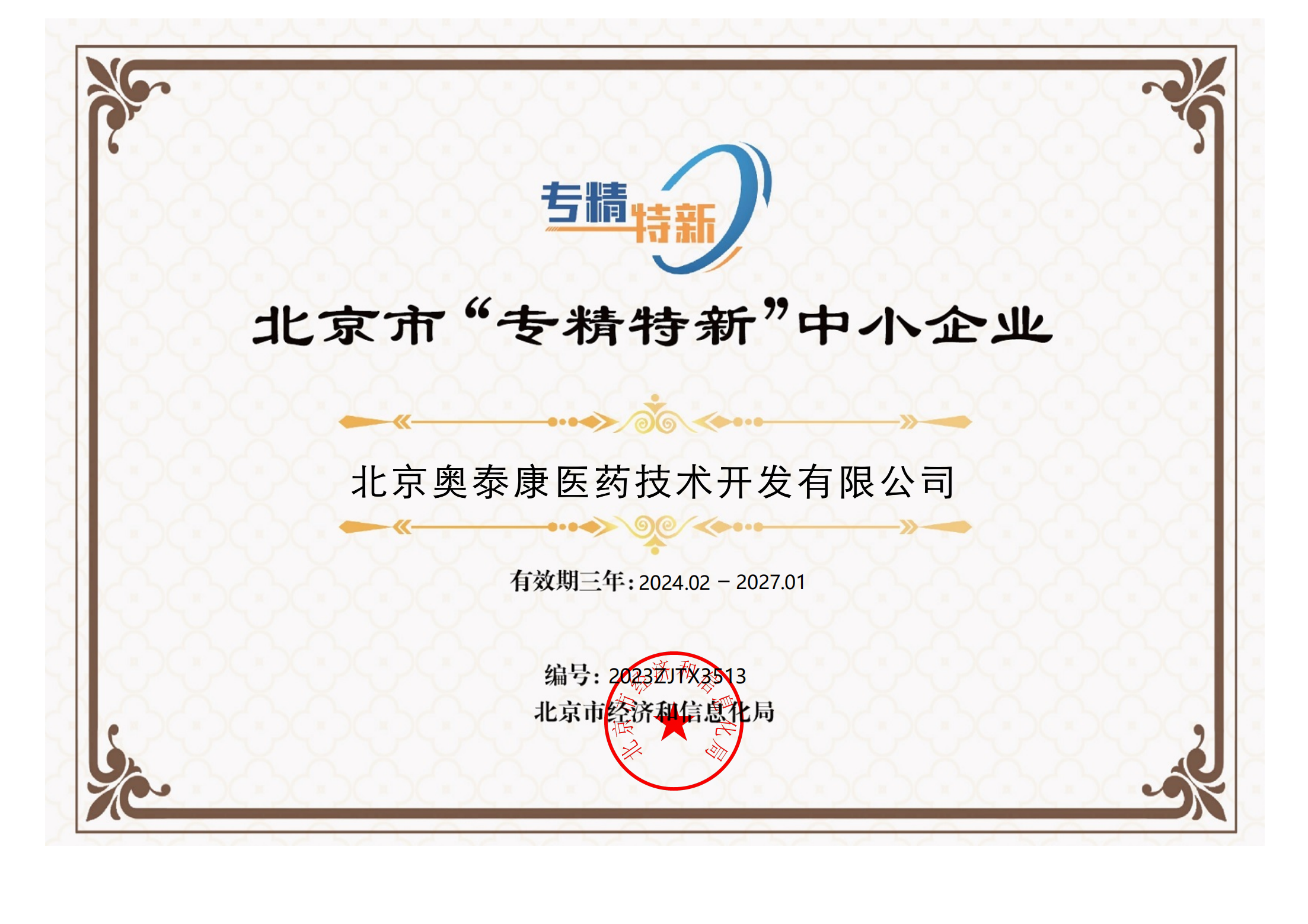 02、奧泰康通過北京市“專精特新”中小企業(yè)認定